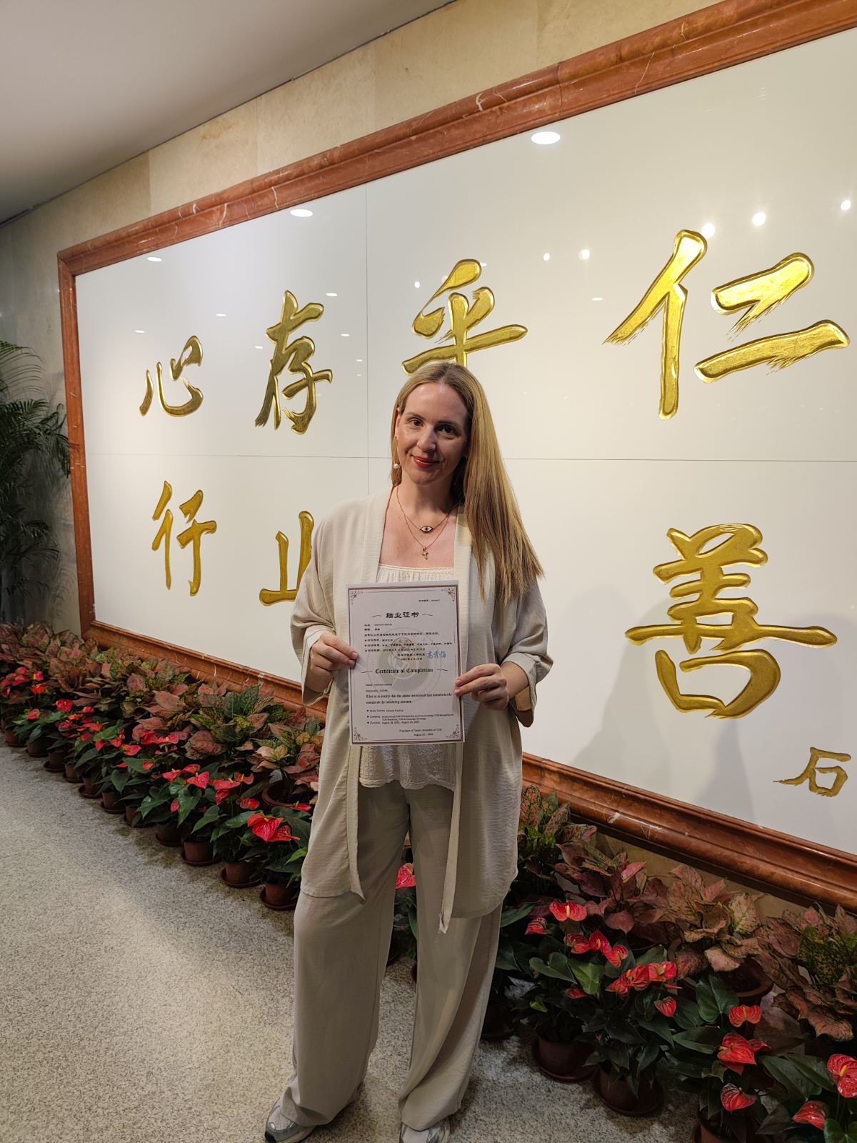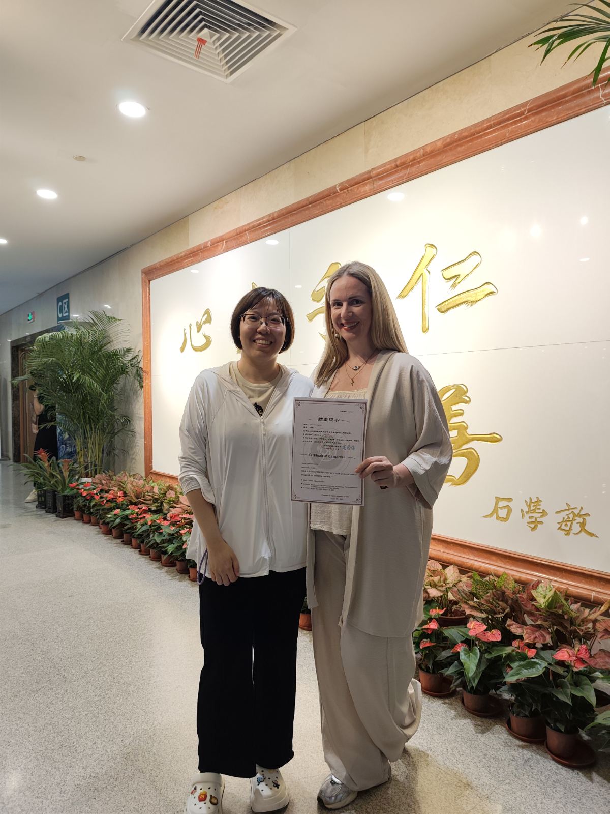 Τον Αύγουστο του 2025 μετεκπαιδεύτηκε στο First Teaching Hospital of Tianjin University of Traditional Chinese Medicine, ένα από τα πλέον αναγνωρισμένα πανεπιστημιακά ιδρύματα της Κίνας στον τομέα της Παραδοσιακής Κινεζικής Ιατρικής. Κατά τη διάρκεια της μετεκπαίδευσης, είχε τη δυνατότητα να εμβαθύνει τις γνώσεις της στον βελονισμό, τη βοτανοθεραπεία, τη μοξοθεραπεία και άλλες τεχνικές, μέσα από έναν συνδυασμό θεωρητικών μαθημάτων και πρακτικών εφαρμογών, υπό την καθοδήγηση έμπειρων καθηγητών και κλινικών ιατρών. Η μετεκπαίδευση αυτή, αποτέλεσε έναν καθοριστικό σταθμό στη συνεχή της πορεία ως θεραπεύτρια, προσθέτοντας πολύτιμα εργαλεία και γνώσεις, που ενισχύουν την ολιστική της προσέγγιση και επιτρέπουν την παροχή πιο ολοκληρωμένων και αποτελεσματικών θεραπειών.